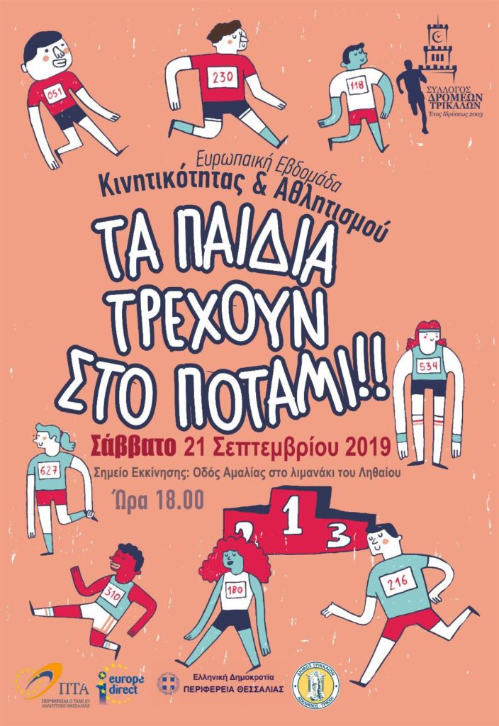 Το Σάββατο 21 Σεπτεμβρίου, η Περιφέρεια Θεσσαλίας και το Περιφερειακό Ταμείο Ανάπτυξης Περιφέρειας Θεσσαλίας, στο πλαίσιο των δράσεων του Κέντρου Ευρωπαϊκής Πληροφόρησης – «Europe Direct» και σε συνεργασία με το Σύλλογο Μαραθωνοδρόμων Ν. Λάρισας  και το σύλλογο δρομέων Τρικάλων, διοργανώνουν την εκδήλωση «Τα παιδιά τρέχουν στο ποτάμι», με αφορμή την Ευρωπαϊκή Εβδομάδα Κινητικότητας, που θα διεξαχθεί στα Τρίκαλα.