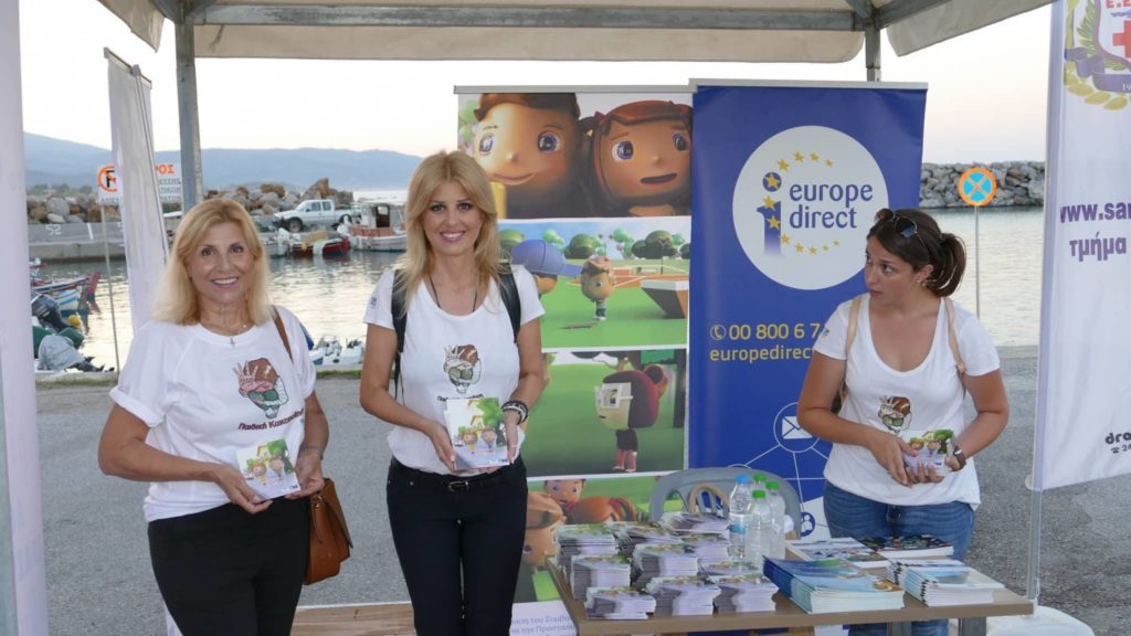 Πιο συγκεκριμένα στο χώρο της συναυλίας της Άλκηστης Πρωτοψάλτη στο φεστιβάλ «Με θέα το Αιγαίο», υπήρξε διαθέσιμο ενημερωτικό υλικό για θέματα της Ευρωπαϊκής Ένωσης από το Κέντρο Ευρωπαϊκής Πληροφόρησης Europe Direct της Περιφέρειας Θεσσαλίας το οποίο εκπροσωπήθηκε από την κα Γιουρούκη Ζωή και τον κ. Χρυσόμαλλο Σωκράτη καθώς και το cd με τίτλο «Το μυστικό της Νίκης 2- Η περιπέτεια του Βίκτωρα» για την πρόληψη κατά της παιδικής σεξουαλικής κακοποίησης το οποίο διανεμήθηκε από την κα Έλενα Ράπτη.