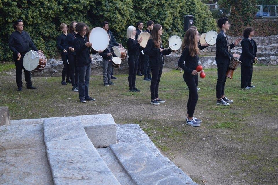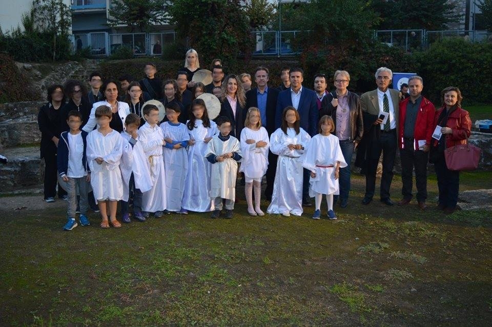 Grazie l'insegnante e membro dell'Associazione Mr.. Tina e sotto e gli studenti della Scuola Primaria 4 ° che hanno partecipato alla manifestazione teatrale, Docente della Scuola di Musica di Larissa Mr.. John Makrigianni e gli studenti di percussioni alla musica.