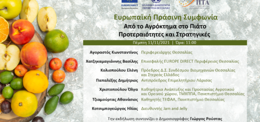 Πέμπτη 11/11/2021 11.00-12.30 Το EUROPE DIRECT Περιφέρειας Θεσσαλίας, στα πλαίσια των προγραμματισμένων δράσεων του για το 2021, σας καλεί να παρακολουθήσετε τη διαδικτυακή εκδήλωση με θέμα ‘Ευρωπαϊκή Πράσινη Συμφωνία – Από το Αγρόκτημα στο...